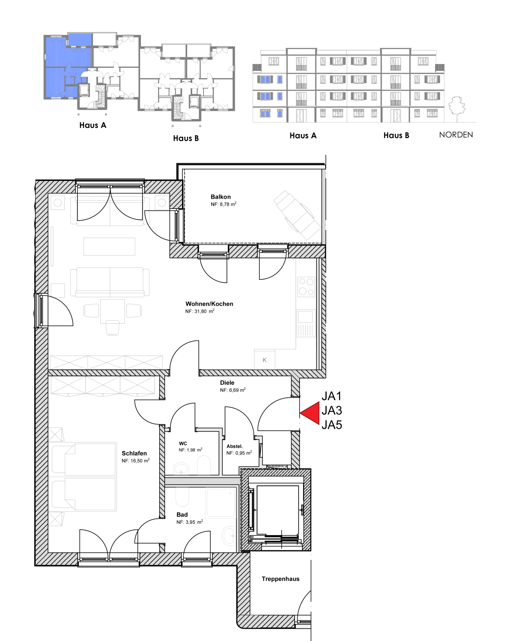 | Wohnung JA3 | 1. OG, links | ca. 67 m² |