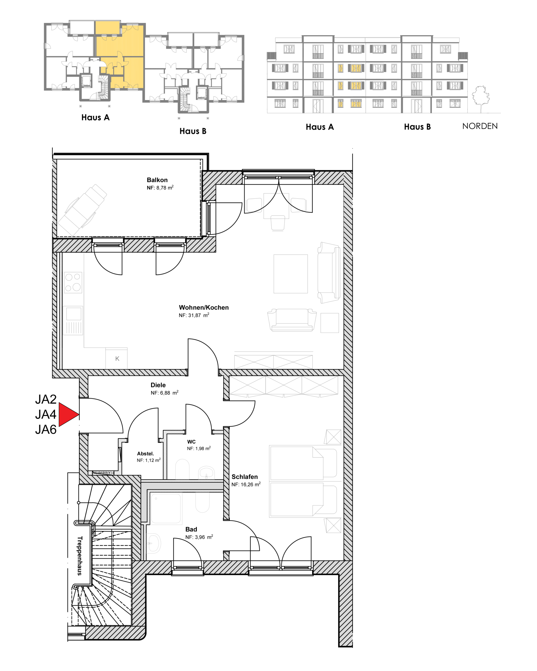 | Wohnung JA2 | EG, rechts | ca. 67 m² |