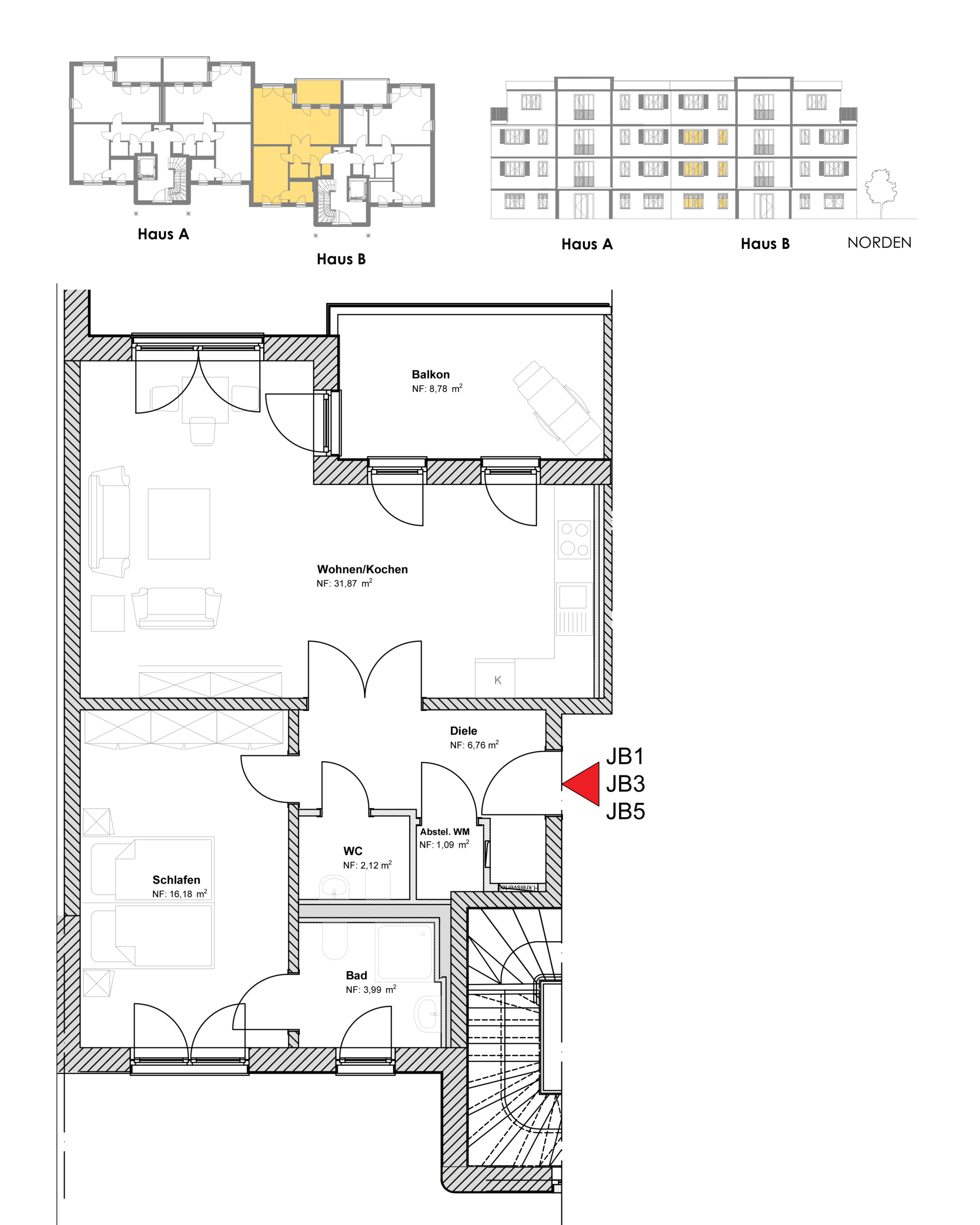 | Wohnung JB4 | 1. OG, rechts | ca. 67 m² |