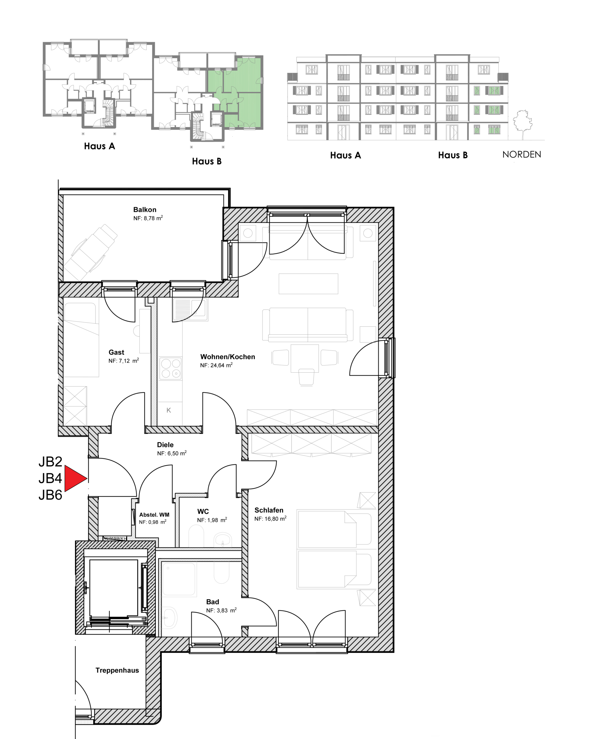 | Wohnung JB2 | EG, rechts | ca. 67 m² |